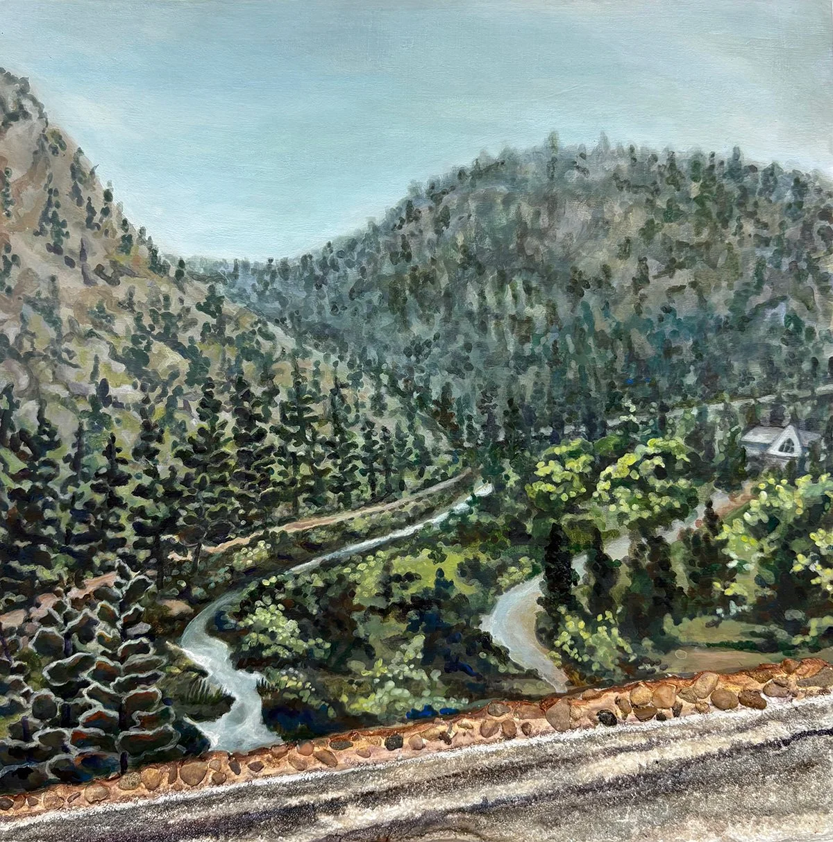 This series of paintings was inspired by a return to nature prompted by the pandemic and the wanderlust that ensued in its wake. A drive from dusk to dawn in the summer of 2023 through the stormy flatlands of North Texas, moonlit vistas of Santa Fe, and winding Rocky Mountain roads of Colorado was pivotal. The chill in the air, worn surfaces of rocks, sounds of rushing water, and grit of the sand as I slid down steep mountain paths heightened my attunement to the physical experience of being in a place.